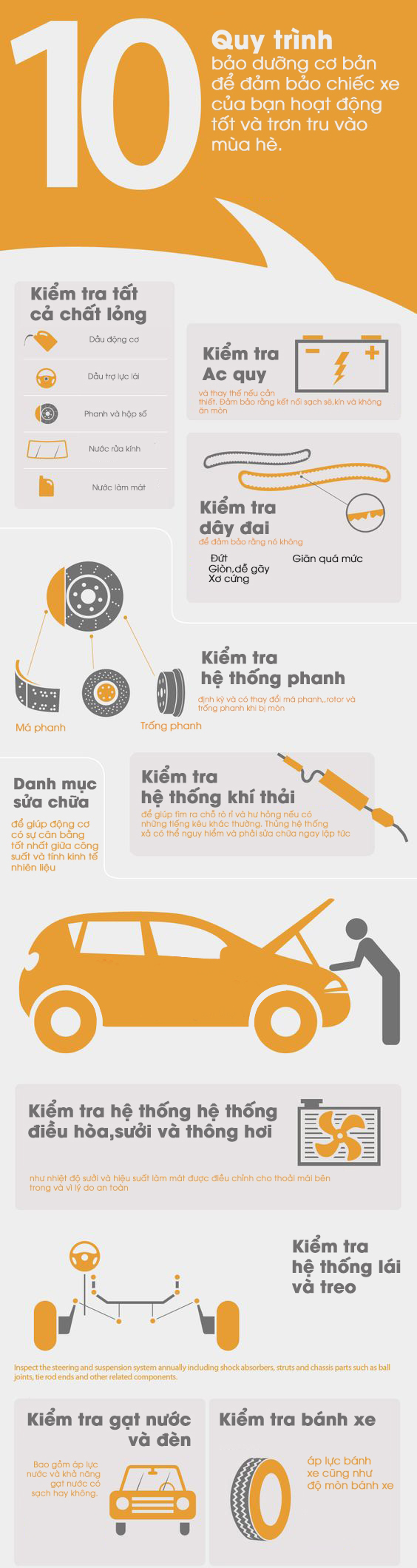 Dưới đây là 10 việc bạn cần làm mỗi khi bảo dưỡng xe, đặc biệt là vào mùa nóng.