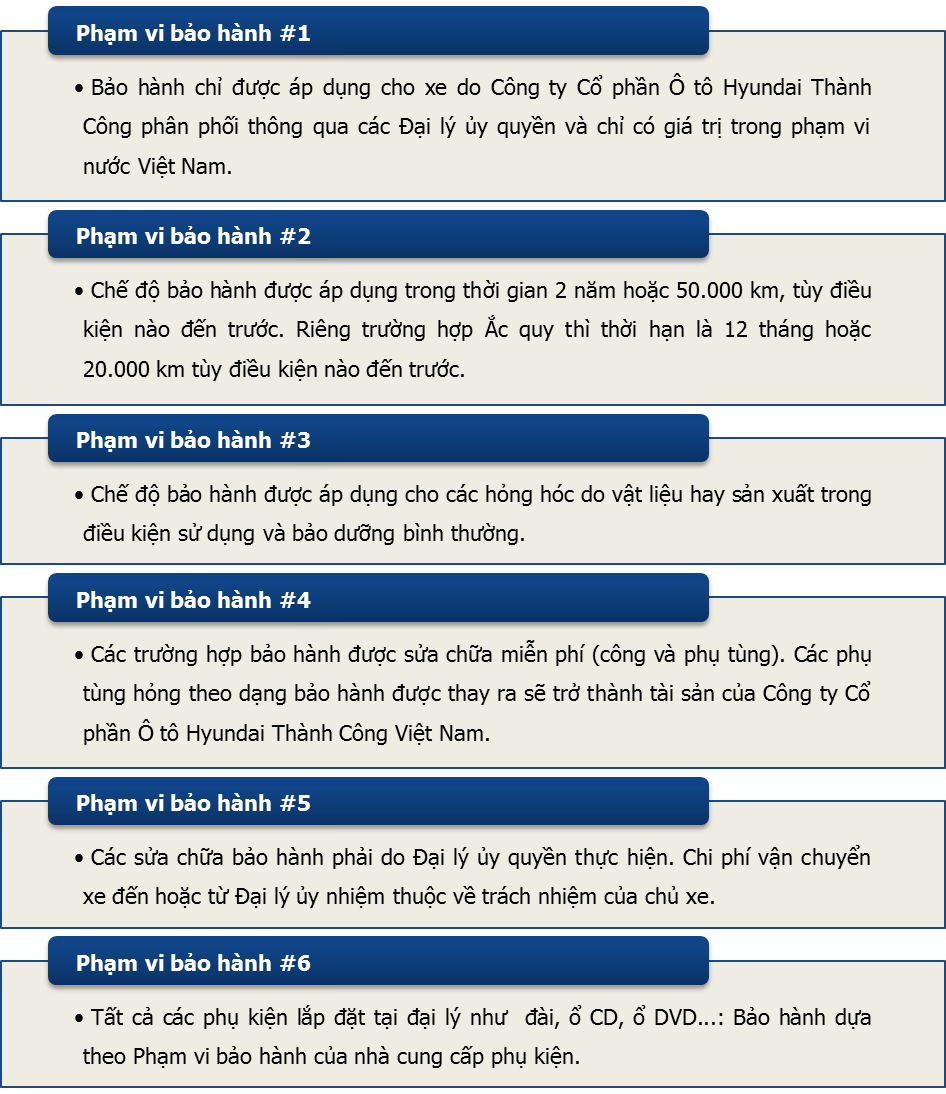 Chế độ bảo hành xe Hyundai do Hyundai Thành Công nhập khẩu và phấn phối tại Việt Nam :