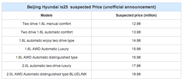 Tham số động cơ Hyundai IX25 tại Bắc Kinh .