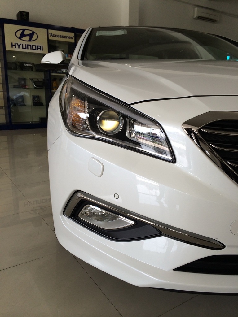 Phía trước: Sự đối lập giữa vẻ mạnh mẽ ở đuôi xe và mượt mà ở phía trước đã tạo nên nét đặc trưng riêng của Sonata.