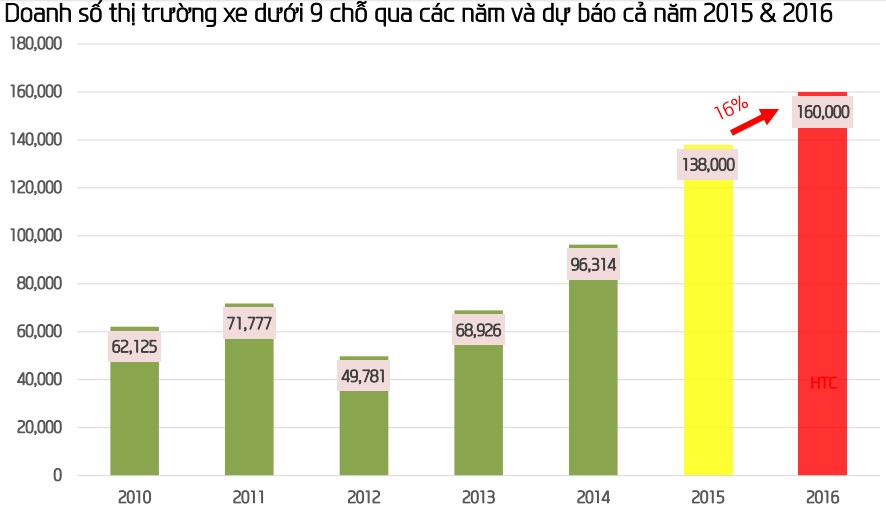 So với mức tăng trưởng và doanh số ổn định của các phân khúc qua năm cùng tình hình kinh tế vĩ mô ổn định với các chính sách hỗ trợ thuế, phí với các dòng xe chiến lược, dự báo thị trường ô tô năm 2016, toàn thị trường sẽ tăng trưởng khoảng 16% so với năm 2015 đạt khoảng 160,000 xe.