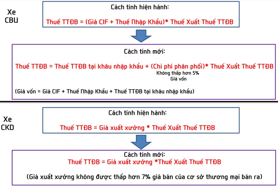 Với cách tính này thì việc TTĐB được tính thêm phần giá trị của chi phí nhập khẩu ( tối thiểu 5% giá vốn) đối với xe nhập khẩu nguyên chiếc (CBU) và tối thiểu 7% giá bán thương mại của xe lắp ráp trong nước (CKD) thì giá xe tăng từ 3 % - 4% là điều không tránh khỏi .